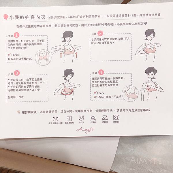 上面有文字搭配圖示教學如何穿內衣。