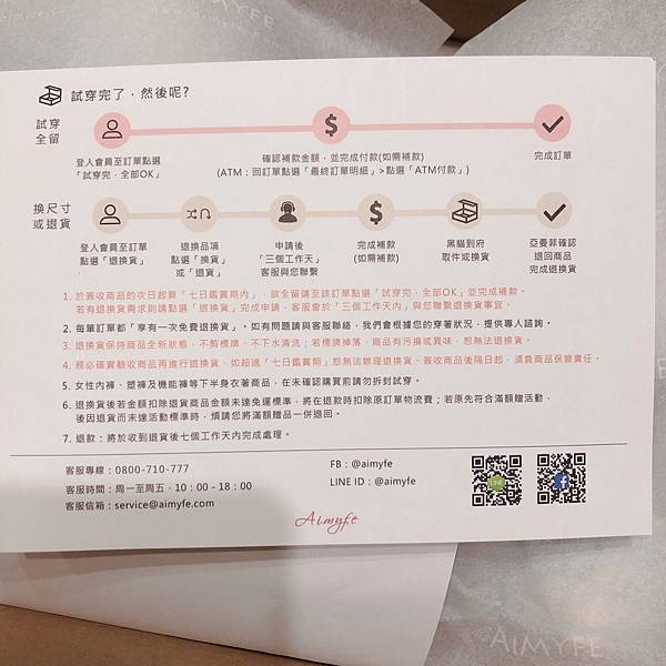 上面有試穿後要全部保留或是退換貨的操作流程,